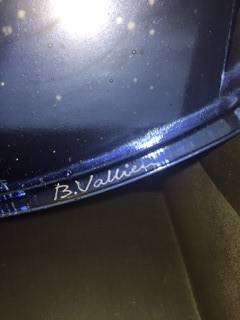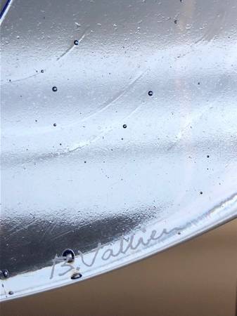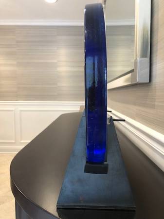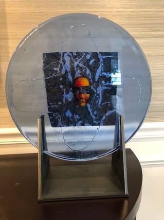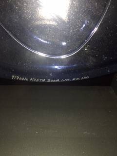 Signed Bertil Vallien for Kosta Boda glass sculpture w/steel base stand circa 2006-2008 13.5"Diameter 16.5" H 1.5" thick excellent condition original box included serious inquiries only cash only