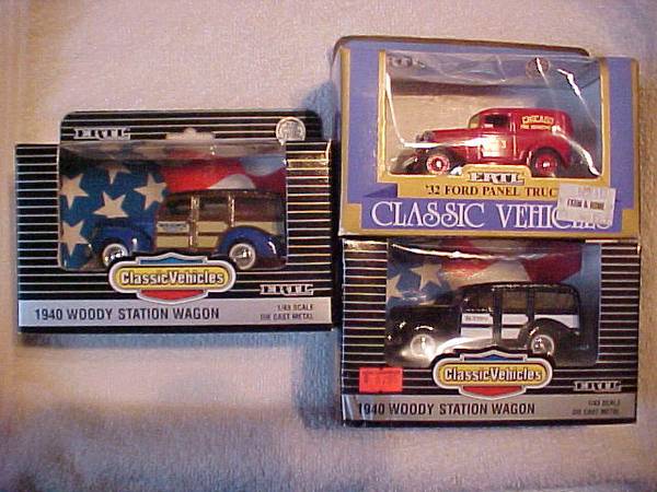 1/43 scale 1940 Woody Station Wagon "Sheriff", 1940 Woody Station "Wilson's", 32 Panel Truck "Chicago Fire Dept",