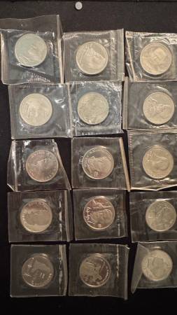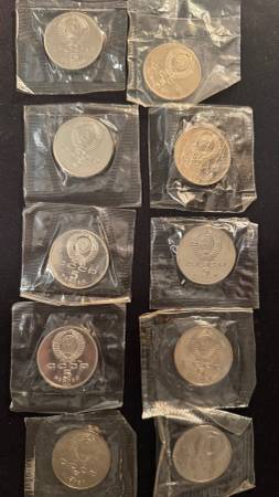 A lot of 15 one rouble and 10 five roubles commemorative coins from 1989-1991 Mint condition, never circulated