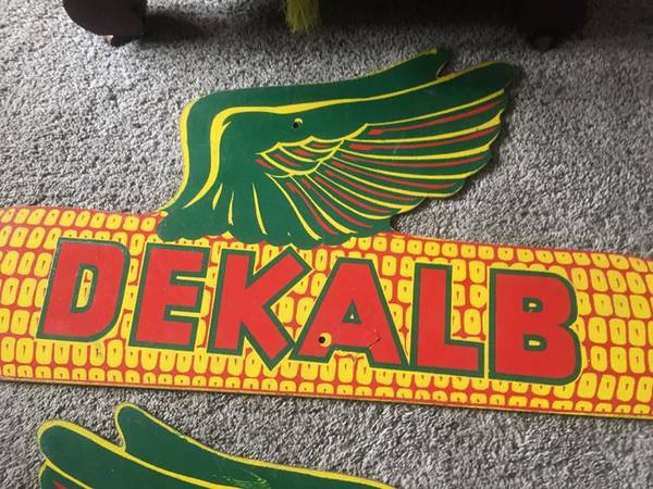 These are vintage Dekalb flying corn, Ear Seed Corn Signs, Advertising Masonite Signs.