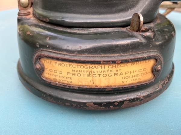 Vintage Cast Check Writing Machine Early 20th Century Todd Technograph Co. Rochester NY, Looks Complete and probably would still work. Approximately 16 inches long, heavy.