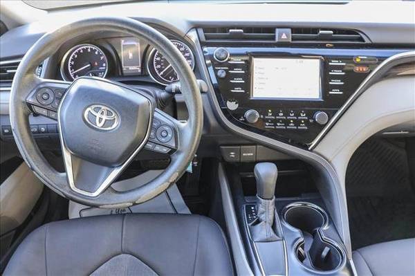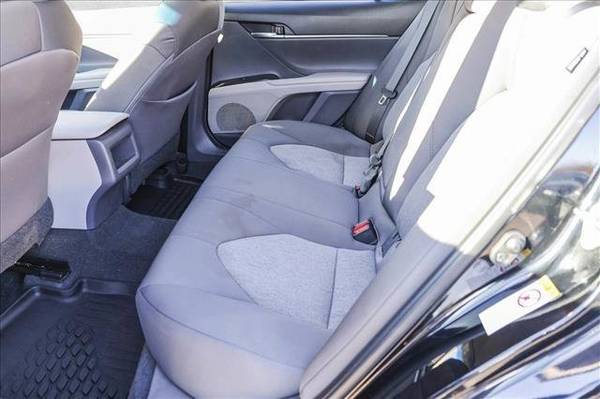 * All Weather Floor Liners & Cargo Tray Package * Rear Spoiler * Lane Keeping Assist * Rear Spoiler * 50 State Emissions * Ash; Fabric Seat Trim * Midnight Black MetallicThis vehicle includes a Money-Back Guarantee* and passed our precise inspection process. Best of all the price you see is the price you pay. No haggling. No back and forth. No pressure. And this price is so good it is guaranteed. *Money-Back Guarantee is valid for 5 days or 250 miles, whichever comes first. Subject to certain terms and conditions. See store for details. Some restrictions apply.Check out this pre-owned 2018 Toyota Camry we recently got in. This is a well kept ONE-OWNER Toyota Camry LE with a full CARFAX history report. The less money you spend at the pump, the more money you'll have to spend on you. So why not consider this wonderfully styled, fuel-efficient Toyota Camry. The Camry LE is well maintained and has just 60,683mi. This low amount of miles makes this vehicle incomparable to the competition. The easiest choice in purchasing your next vehicle is choosing one with a detailed history like this gently driven pre-owned vehicle. This Toyota Camry LE is in great condition both inside and out. No abnormal wear and tear. The 2018 Camry LE blends stylish design, practical comfort and modern features into a dependable midsize sedan. The 2.5-litre 4-cylinder engine produces 203 hp and pairs with an 8-speed automatic transmission, delivering an EPA rating of about 28 / 39 mpg city/highway. On the outside, the LE comes with 17-inch alloy wheels and a bold new front-end styling that gives the Camry a more athletic presence. Inside, youll find a comfortable cabin that seats five, with a power-adjustable drivers seat, a 60/40 split-fold rear seat, and the upgraded Entune 3.0 infotainment system (including an 8-inch touchscreen in some packages). Safety-wise, Toyota includes its Safety Sense P suite as standard offering features like pre-collision system with pedestrian detection, lane departure alert with steering assist and automatic high beams. Inside and out, the Camry LE aims for a smooth, modern ride with good value, combining fuel economy, reliability and upscale touches without moving into luxury pricing.