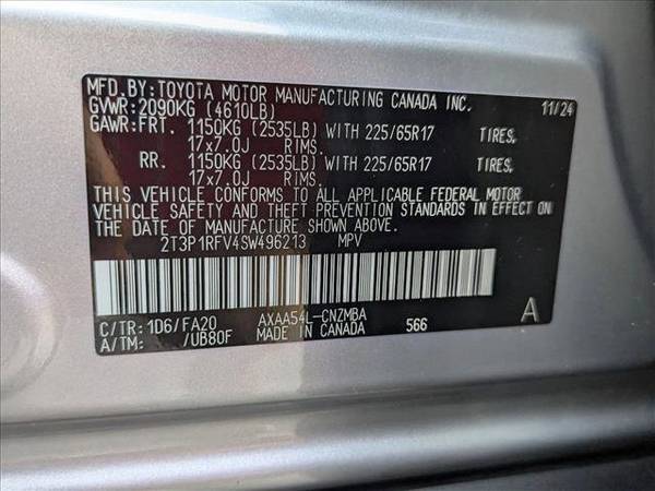 * Lane Keeping Assist * Keyless Start * Rear Spoiler * Black; Fabric Seat TrimThis vehicle includes a Money-Back Guarantee* and passed our precise inspection process. Best of all the price you see is the price you pay. No haggling. No back and forth. No pressure. And this price is so good it is guaranteed. *Money-Back Guarantee is valid for 5 days or 250 miles, whichever comes first. Subject to certain terms and conditions. See store for details. Some restrictions apply.Elevate your driving experience with this 2025 Toyota RAV4 XLE , a perfect blend of style, efficiency, and versatility. With just 21,337 miles , this SUV is practically brand new and ready to deliver years of reliable performance. Whether you're commuting through the city or exploring weekend getaways, the RAV4 XLE offers the comfort, technology, and safety you needwrapped in a sleek, modern design. And when you buy from AutoNation Toyota Libertyville , you're not just getting a vehicleyou're joining a community that puts your satisfaction first. Key Features of the 2025 Toyota RAV4 XLE Low Mileage : Only 21,337 miles, lightly driven and well-maintained 2.5L 4-Cylinder Engine : Efficient power with smooth acceleration Toyota Safety Sense 2.5 : Includes Pre-Collision System, Lane Departure Alert, and Dynamic Radar Cruise Control Smart Key System : Keyless entry and push-button start for convenience Dual-Zone Climate Control : Personalized comfort for driver and passenger Apple CarPlay & Android Auto : Seamless smartphone integration Blind Spot Monitor with Rear Cross-Traffic Alert : Enhanced awareness and safety LED Headlights & Daytime Running Lights : Stylish and functional lighting 17-Inch Alloy Wheels : Durable and eye-catching Spacious Interior & Cargo Room : Perfect for families, gear, and road trips Why Buy from AutoNation Toyota Libertyville? Transparent Pricing : No hidden fees, just honest, upfront deals AutoNation 1Price Promise : Competitive pricing without the hassle of negotiation Certified Technicians : Every vehicle is inspected and serviced by factory-trained experts Exceptional Customer Service : Rated highly for friendliness, professionalism, and follow-through Flexible Financing Options : Tailored to fit your budget and lifestyle Nationwide Inventory Access : If its not on the lot, theyll find it for you This RAV4 XLE wont last long, especially with mileage this low and a dealership that makes buying easy and enjoyable. Ready to take the wheel?