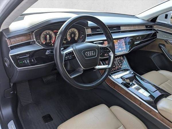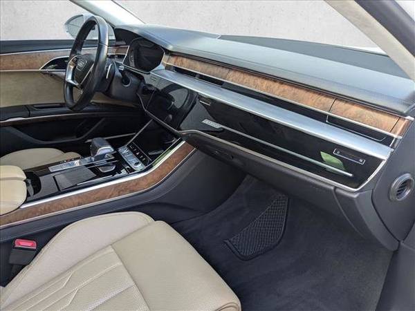 * Dual Moonroof * Leather Seats * Navigation System * Keyless Start * Cooled Front Seat(S) * Black; Valcona Leather Seat Upholstery * Glacier White MetallicThis vehicle includes a Money-Back Guarantee* and passed our precise inspection process. Best of all the price you see is the price you pay. No haggling. No back and forth. No pressure. And this price is so good it is guaranteed. *Money-Back Guarantee is valid for 5 days or 250 miles, whichever comes first. Subject to certain terms and conditions. See store for details. Some restrictions apply.Thank you for your interest in one of Audi Westmont's online offerings. Please continue for more information regarding this 2019 AUDI A8L V8 4.0 Recently performed our rigorous and Certified AutoNation 125 point Performance inspection; Performed at Audi Westmont by factory trained technicians, with all services brought up to date. Also includes our exclusive AutoNation 90 day/ 4,000 miles warranty. Complimentary loaner cars (over 60 Audis available), complimentary lifetime car washes (open 6 days a week) and much more. * A Money-Back Guarantee is valid for 5 days or 250 miles, whichever comes first. Subject to certain terms and conditions. See store for details. Some restrictions apply. Our pre-owned vehicles are priced right from the beginning. The price you see if the price you pay. No haggling. No back and forth. No pressure. Command the Road: 2019 Audi A8 L V8 – Power Meets Prestige Experience the pinnacle of German engineering with the 2019 Audi A8 L V8, now available at AutoNation Toyota Libertyville. With only 59,021 miles, this full-size luxury sedan delivers uncompromising performance, cutting-edge technology, and first-class comfort. It’s not just a car, it’s a statement. Key Features: Performance & Powertrain 4.0L twin-turbocharged V8 engine 453 horsepower @ 5,500 rpm and 487 lb-ft of torque @ 1,800 rpm Mild hybrid system for smoother acceleration and improved efficiency 8-speed Tiptronic® automatic transmission Audi quattro® All-Wheel Drive for superior grip and control Fuel Efficiency EPA-estimated 15 MPG city / 23 MPG highway 21.7-gallon fuel tank for extended range Luxury & Comfort Premium Valcona leather seats with multi-level heating 14-way power-adjustable front seats with memory settings Available massaging and ventilated seats for front and rear passengers Four-zone automatic climate control Spacious rear cabin with limousine-like legroom Technology & Innovation Dual touchscreen infotainment system with haptic feedback Audi Virtual Cockpit digital display Advanced navigation and smartphone integration Audi Advanced Key with push-button start Safety & Driver Assistance Audi pre sense® safety suite Adaptive cruise assist with traffic jam assist (optional) Rearview camera and parking sensors High-strength construction and top-tier crash ratings Design & Presence Sleek, elongated body with LED headlights and taillights 19-inch alloy wheels and chrome accents Cargo capacity: 12.5 cu.ft. for weekend getaways or executive travel Why Choose the A8 L V8? This A8 L V8 offers the rare combination of raw power and refined luxury. With low mileage and a host of premium features, it’s the ideal choice for drivers who demand excellence in every detail. Schedule Your Test Drive Today! Visit AutoNation Toyota Libertyville and experience the 2019 Audi A8 L V8 firsthand. From its commanding performance to its serene cabin, this sedan redefines what it means to Thank you for your interest in one of Audi Westmont's online offerings. Please continue for more information regarding this