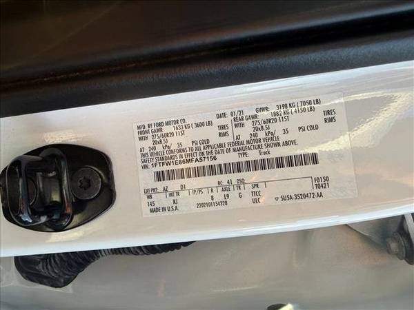 * Equipment Group 601A High * Max Trailer Tow Package * Ford Co-Pilot360 Active 2.0 Package * Twin Panel Moonroof * Wheels: 20" Machined-Aluminum * 360 Degree Camera * Power Tailgate * Panoramic Roof * Engine: 3.5L V6 Ecoboost * Star White Metallic Tri-Coat * Leather Seats * Navigation System * Electronic Locking W/3.55 Axle Ratio * Extended Range 36 Gallon Fuel Tank * Lane Keeping Assist * Keyless Start * Cooled Front Seat(S) * Front License Plate Bracket * Java; King Ranch Leather Bucket Seats * Tires: 275/60R20 Owl A/T * Transmission: Electronic 10-Speed AutomaticThis vehicle includes a Money-Back Guarantee* and passed our precise inspection process. Best of all the price you see is the price you pay. No haggling. No back and forth. No pressure. And this price is so good it is guaranteed. *Money-Back Guarantee is valid for 5 days or 250 miles, whichever comes first. Subject to certain terms and conditions. See store for details. Some restrictions apply.Thank you for your interest in one of Mercedes-Benz of Naperville's online offerings. Please continue for more information regarding this 2021 Ford F-150 King Ranch with 150,142mi. This Ford includes: ENGINE: 3.5L V6 ECOBOOST V6 Cylinder Engine Gasoline Fuel Turbocharged *Note - For third party subscriptions or services, please contact the dealer for more information.* This Ford F-150 King Ranch's level of quality is not meant for just anyone. It's meant for the person who strives for a classy, comfortable, and luxurious car. Simply put, this Four Wheel Drive is engineered with higher standards. Enjoy improved traction and safety while driving this 4WD Ford F-150 King Ranch. Added comfort with contemporary style is the leather interior to heighten the quality and craftsmanship for the Ford F-150 King Ranch. You'll quickly realize how much you will need a navigation system once you are stopping for directions or looking up addresses on your phone instead of looking at the road. This Ford F-150 King Ranch features a navigation system that will free you of these unnecessary headaches.