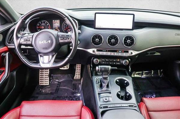* Sun & Sound Package * Gt-Line Apex Special Edition Package * Sun/Moonroof * Leather Seats * Navigation System * Red Interior Color Package * Carpeted Floor Mat * Lane Keeping Assist * Keyless Start * Aurora Black * Black; Leather Seat TrimThis vehicle includes a Money-Back Guarantee* and passed our precise inspection process. Best of all the price you see is the price you pay. No haggling. No back and forth. No pressure. And this price is so good it is guaranteed.Laurel BMW of Westmont has a wide selection of exceptional pre-owned vehicles to choose from, including this 2023 Kia Stinger. The best part about this well-maintained vehicle is that it is a CARFAX one-owner vehicle. Enhanced performance, a refined interior and exceptional fuel economy are just a few of the things you'll enjoy about this all-wheel drive vehicle. If you are looking for a pre-owned vehicle that looks brand-new, look no further than this Aurora Black Kia Stinger. The incredible 2023 Kia Stinger GT-Line is an invigorating performance machine that will pump adrenaline into any driver who dares to take the wheel. Do you really need any other reason to want one? The Kia Stinger GT-Line is in a class on its own. So much so, that Kia didn't miss a beat when they loaded this vehicle with an abundance of a-la-carte options. Marked by excellent quality and features with unmistakable refined leather interior that added value and class to the Kia Stinger GT-Line. You can take the guesswork out of searching for your destination with this Kia Stinger GT-Line's installed Navigation system. This car has an exceptional paint finish that shows no sign of age or wear. This is one of those rare vehicles that comes along for just a brief moment.*Money-Back Guarantee is valid for 5 days or 250 miles, whichever comes first. Subject to certain terms and conditions. See store for details. Some restrictions apply.
