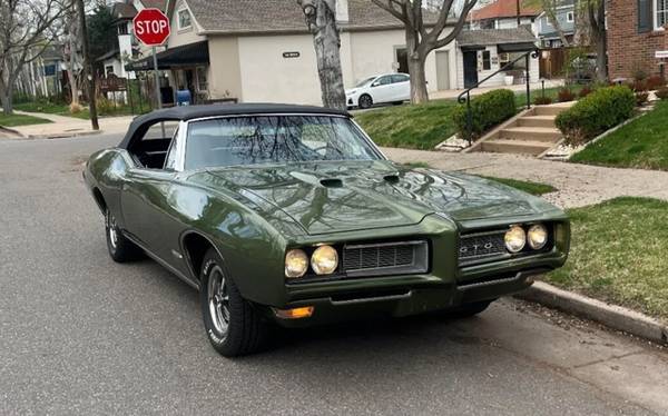 1968 Pontiac GTO convertible 400-350 HP with TH400 automatic on the floor. With buckets and console.{ Hurst dual gate shifter.} power steering and power front disc brakes. Hideaway headlights. Factory hood Tachometer. Power convertible top. Rally II wheels older restoration of really nice GTO convertible. Phs documented. Window sticker. Runs and drives beautifully ready to be enjoyed Car located in DENVER Colorado $42900 obo show contact info