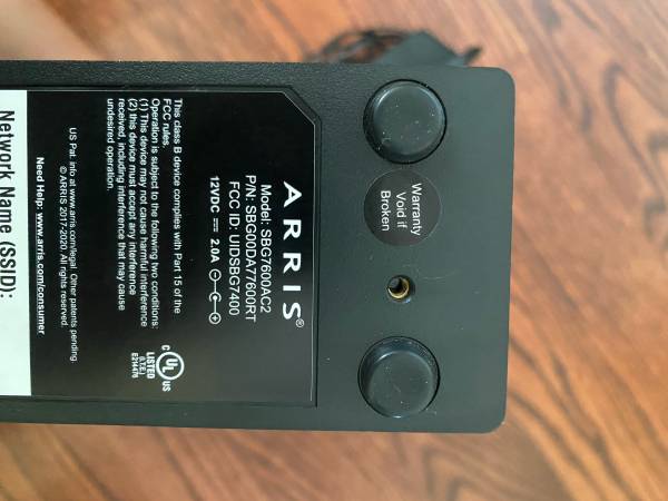 5G WiFi Black arris surfboard router. 2.4 and 5 GHz network SSID. Model#SBG77600RT. 12VDC. 2.0A. Ethernet connections available. Easy to use and setup. Slim design. Works great just no longer needed.