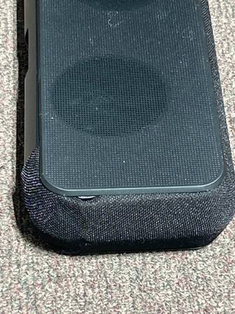 Condition: Fully working. Touch panel responsive; plays via HDMI eARC and Bluetooth. Light grille scuffs and a small fabric snag on one corner (pictured). No box.