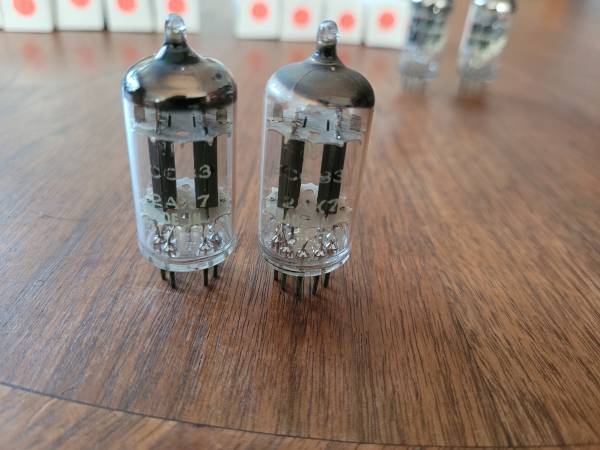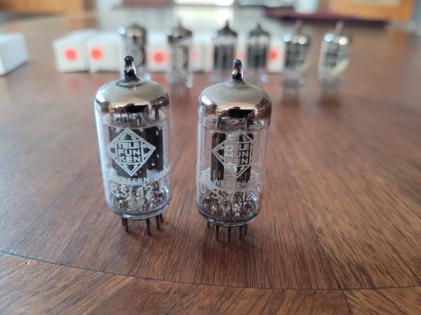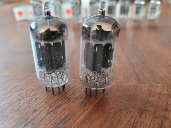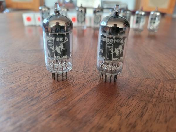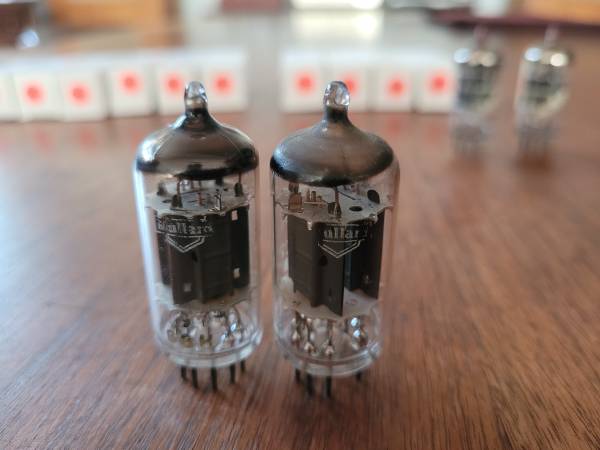 Pics are a selection of 12ax7's, nice ones (mullard, amperex bugle boy, telefunken, valvo). But I have quite a few more - too many tubes to list prices for each, similar quality 6ca7 / EL34's, 6bq5 / EL84's, 5ar4 / GZ34, globe 45, RCA black plate 6l6gc, Globe 50, Tung Sol black glass round plate 6sn7, etc also available. All are tested on a calibrated Hickok.