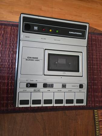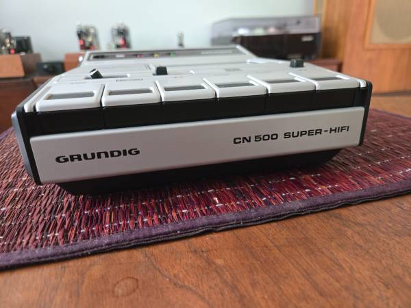 For sale is A Grunding CN 500 Super Hifi cassette Deck with Cables. It is in pretty nice cosmetic condition, but I am unable to test the unit because of the lack of a step up/ step down transformer for the european voltages. Came with a nice Grundig Console I purchased some time ago