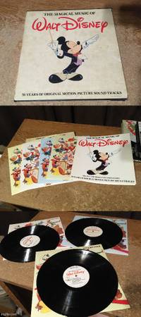 THE MAGICAL MUSIC OF WALT DISNEY 50 YEARS OF ORIGINAL MOTION PICTURE SOUND TRACKS ONLY HAS RECORDS 2,3,4 AND BOOK. COVER IS DIRTY, SPINE IS TORN
