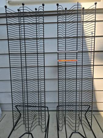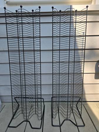 Heavy duty metal, modern cd stand. Holds 130, stands 36" tall. One tower is missing a bulb but it does affect the structure of the stand. Great for bedrooms, dorm room, next to your music station....