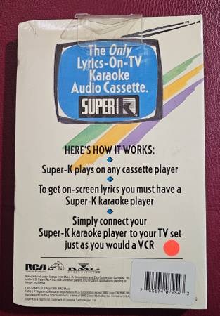 wrapped in original packaging, unopened, RCA Super K, The Only Lyrics On Tv Karaoke Cassette, Works audio only on any cassette player, lyrics sheet also enclosed.