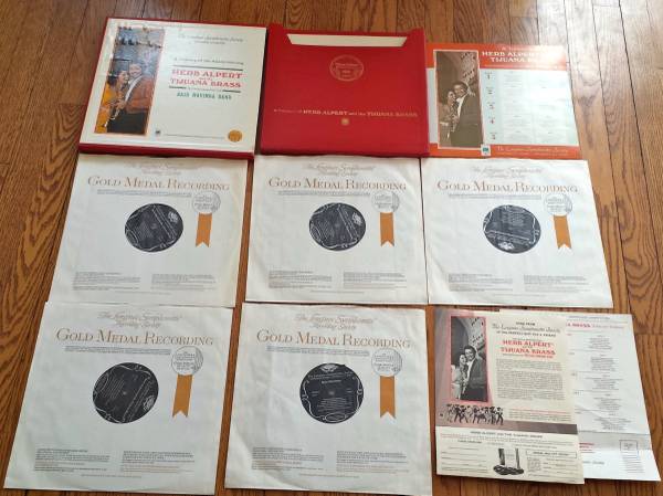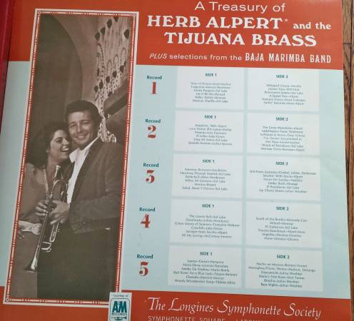 Vinyl records in great condition: Herb Alpert and the Tijuana Brass 5 albums set for $8, Herb Alpert and the Tijuana Brass Going Places $2, Pearly Shells (Billy Vaughn) $2