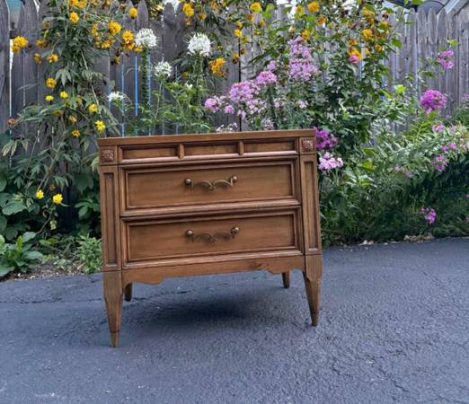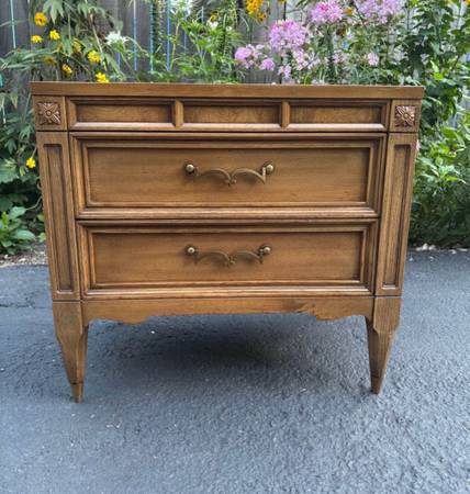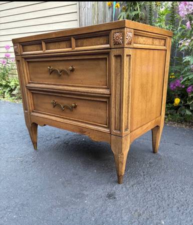 Available AMERICAN OF MARTINSVILLE Italian Neoclassical Tuscan Style Two Drawer Nightstand. This piece is in excellent condition. Please see all pictures and ask any questions you may have about this piece. Delivery is available to all Chicago land and suburbs.