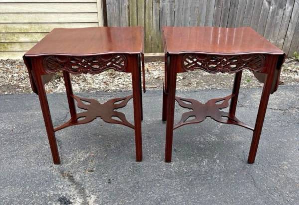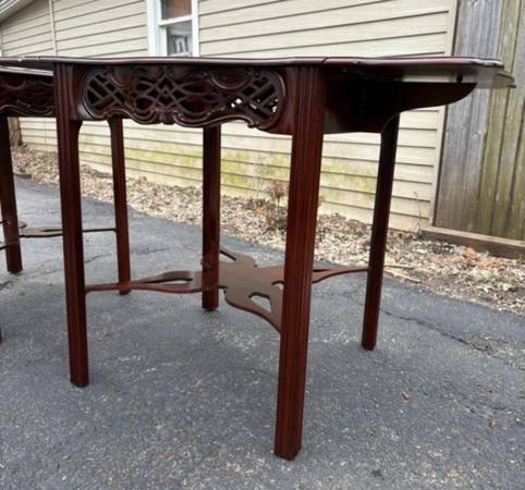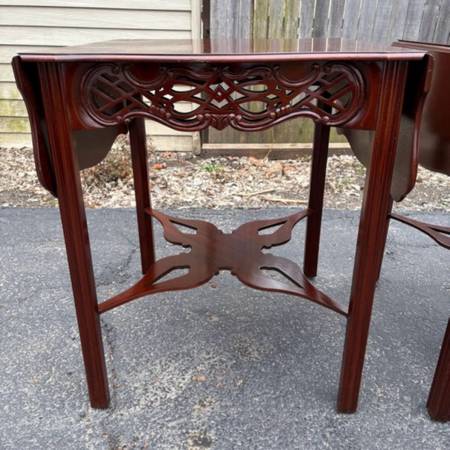 Available Baker Furniture Historic Charleston Collection Carved Mahogany Pembroke Table set. These set shows minimal amount of imperfections from age please see all pictures and ask any questions you may have about this set. Delivery is available to all Chicago land and suburbs.