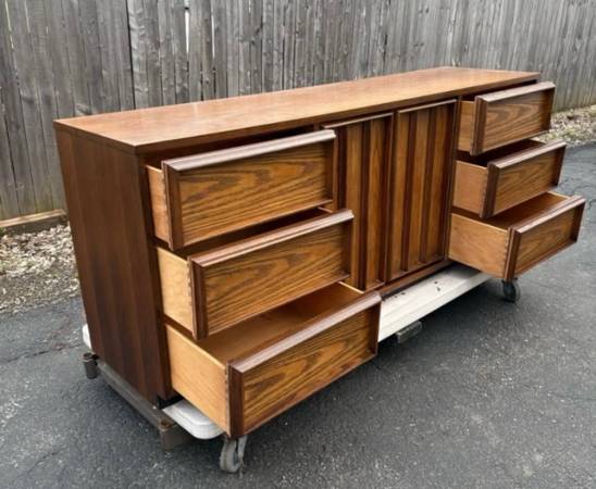 Bassett 9 Drawer/Cedenza/Media Center Mid Century. This piece shows minimal amount of imperfections from age all drawers work well. Please see all pictures and ask any questions you may have about this piece. Delivery is available to all Chicago land and suburbs.