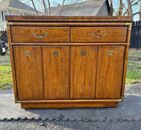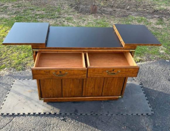 Available Drexel Accolade Italian Campaign Style Flip-Top Server Buffet. This piece is in excellent condition please see all pictures and ask any questions question you may have about this piece. Delivery is available to all Chicago land and suburbs.