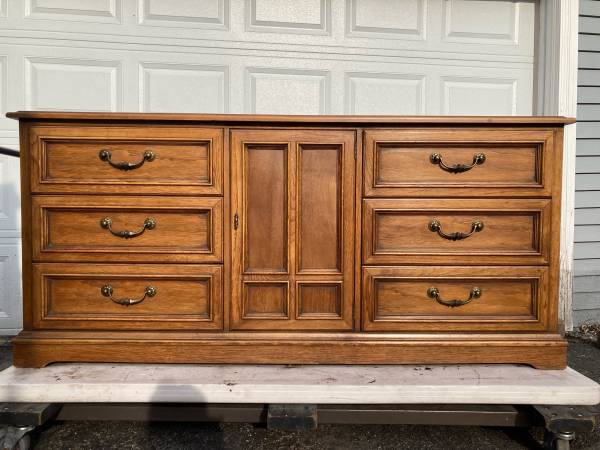 Esperanto 9 Drawer Dresser by Drexel. All drawers work great and are dovetails. This dresser shows minor imperfections, all solid wood. Delivery available to all Chicago area and surrounding. L 70”...