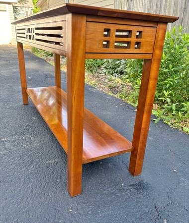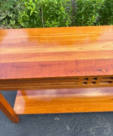 Available Harder Furniture Solid Cherry console Table. This piece shows minimal amount of imperfections please see all pictures and ask any questions you may have about this piece. Delivery is...