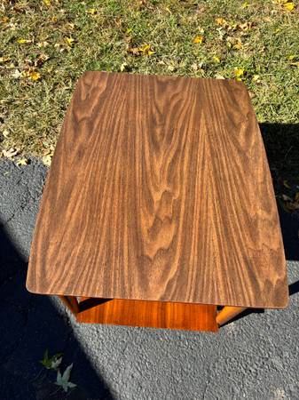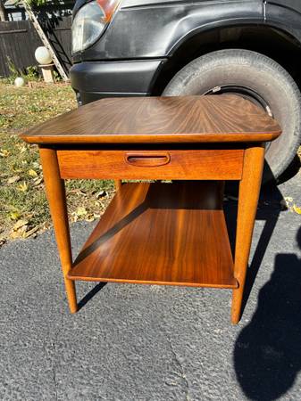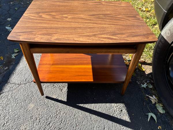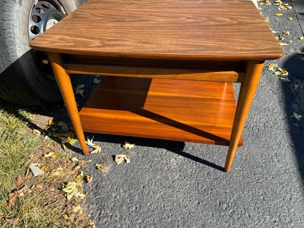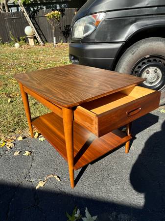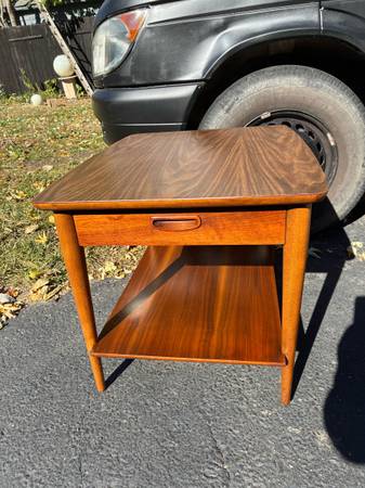 Laminate top Mid Century end table by Lane Furniture , this piece offers one drawer for storage. Pick up Aurora Illinois or delivery available with additional fee. Top 22”x 28” x 20” 1/4 tall