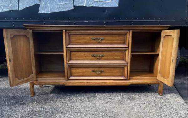 Available Mid Century Buffet/Credenza/Media Center Thomasville. This piece show minimal amount of imperfections from age and from being pre-own. Please see all pictures and ask any questions you may have about this piece. Delivery is