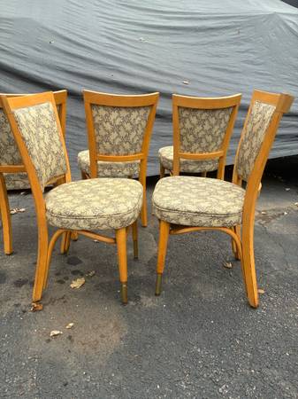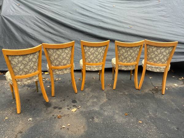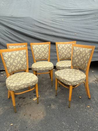 Set of 5 Mid Century Chairs with vinyl cover. These set is sturdy frames shoes done blemishes from aged and used. Delivery available to all Chicago area and surrounding.