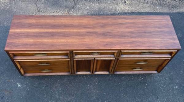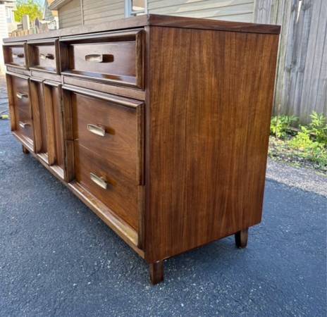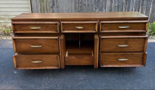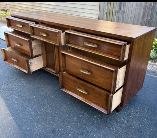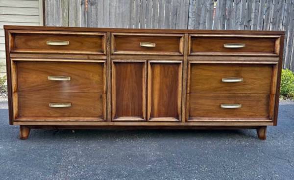 Available Mid Century 8 Drawer Dresser Karlit Made in Sweden. This piece shows minimal amount of imperfections from age. All drawers work well and they consist of solid wood and dovetailed. Please see all pictures and ask any questions you may have about this piece. This piece has been meticulously cleaned,