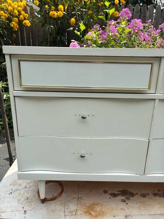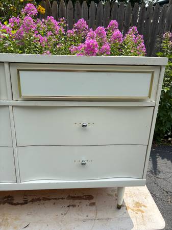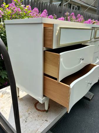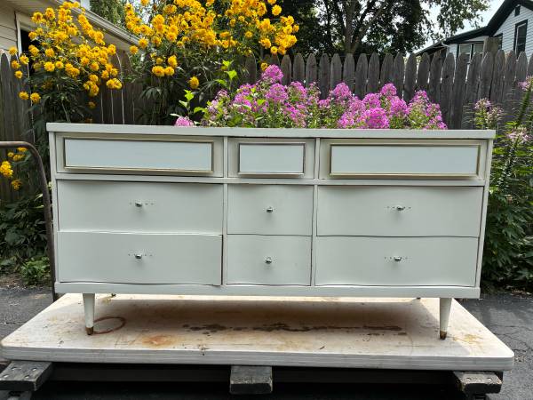 Available 9!drawers dresser by Bassett Furniture , Drawers are dovetails and works well, there is a few minor nicks on the paint. Delivery available to all Chicago area and surrounding. L60” D 17”...