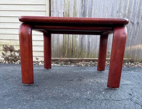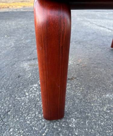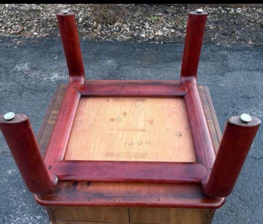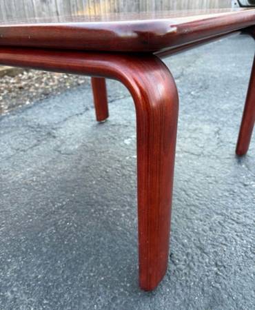 Available Single Side Table Bend wood Legs Floating top. This piece shows minimal amount of information from age. It is well made but couldn’t find any makers mark. Please see all pictures and ask any questions you may have about this piece. Delivery is available to all Chicago land and suburbs.