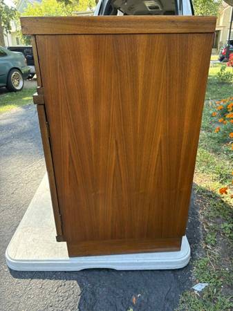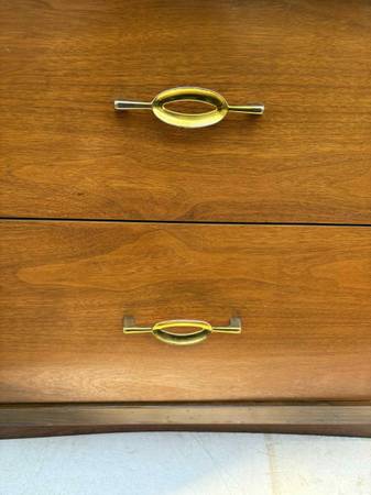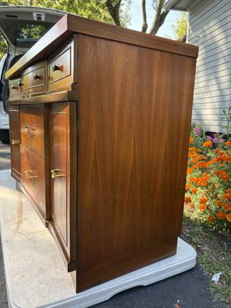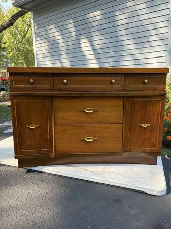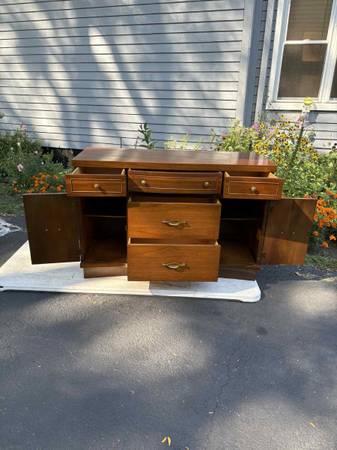 Available Mid Century buffet by Stanley Furniture , drawers works well , this piece shows minor wear, delivery available to all Chicago area and surrounding .