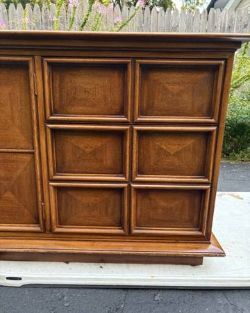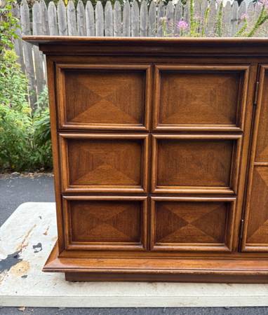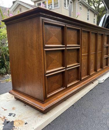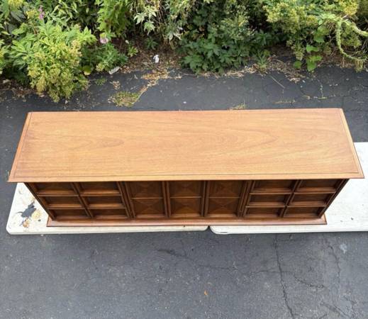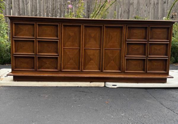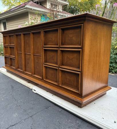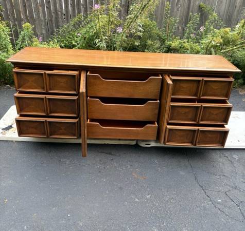 Available Thomasville 9 Drawer Dresser/Credenza/Media center. This piece shows minimal amount of information from age, all drawers work well and they consist of solid wood and dovetailed joints. Please see all pictures and ask any questions you may have about this piece. Delivery is available to all Chicago land and suburbs also it can be picked up is Aurora IL.