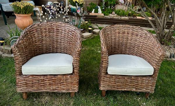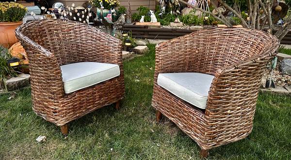 (2) SAFAVIEH Home OMNI Rattan Wicker Barrel Chairs - $250 (Chicago)