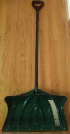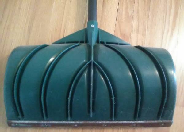 Heavy duty green snow shovel with steel edge for ice removal - curved blade 20" across - excellent condition - $15 winter pusher shovels blizzard