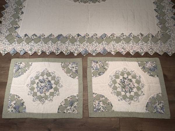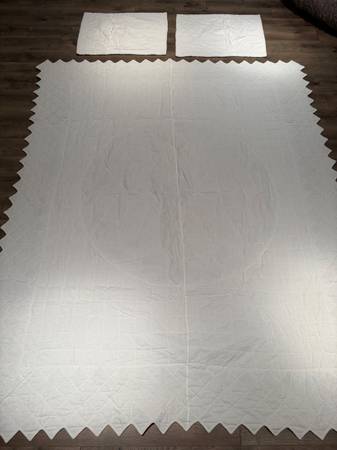 This 3-piece set is in EXCELLENT CONDITION with no stains, tears, or worn areas. It was only used in a guest room from a clean, smoke- and pet-free home. Machine washable, and the set has been freshly laundered and ready to use!