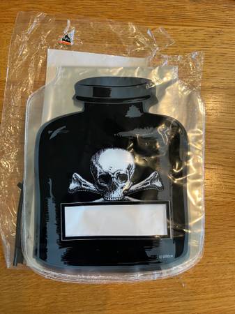1 - package of 6 party favor bags - Poison Jars with Black twist ties.