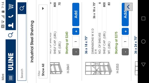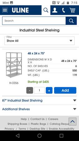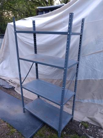 Gray STEEL warehouse METAL SHELVING Uline stairs pallet storage -...