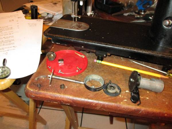 The Motor, Upper Tension Assembly, Bight Control Mechanism, and Foot Pedal