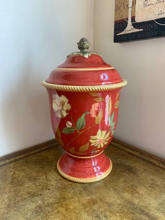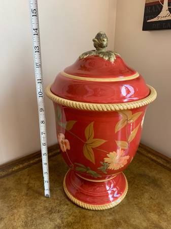 Raymond Waites Crimson Garden Canister Cookie Jar with lid 10.5". Excellent condition, no chips, no cracks, no repairs. Pick up in Highland Park.