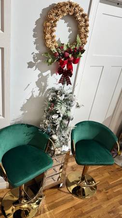 Chic modern style shines bright with the unique design Adjustable Bar Stools W/fabric shield . With a low rounded backrest, sleek gold armrests, and a gold metal base, it's the perfect piece for your contemporary dining or bar area. The Adjustable Bar Stool has smooth swivel capability with lush velvet upholstery.