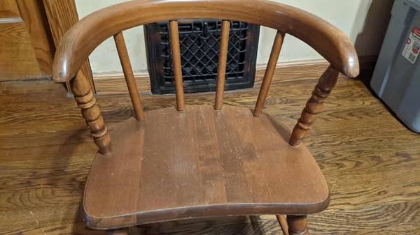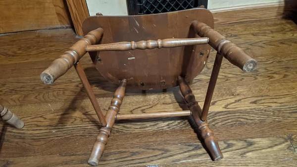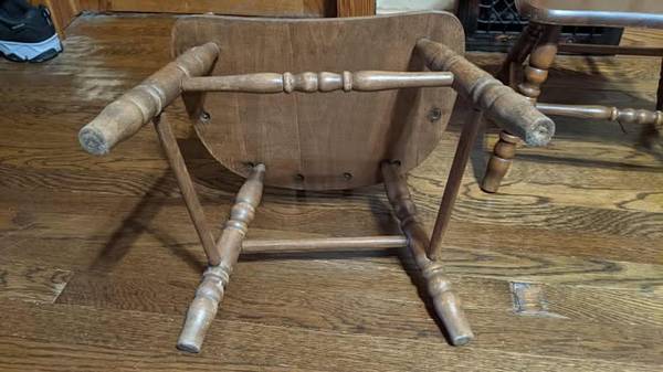 CASH ONLY BOTH HAVE WEAR/SCUFFS ONE CHAIR HAS SOME CRACKS ON THE BACK. CHAIR ABOUT 20" TALL X 15" WIDE X 10.5" DEEP