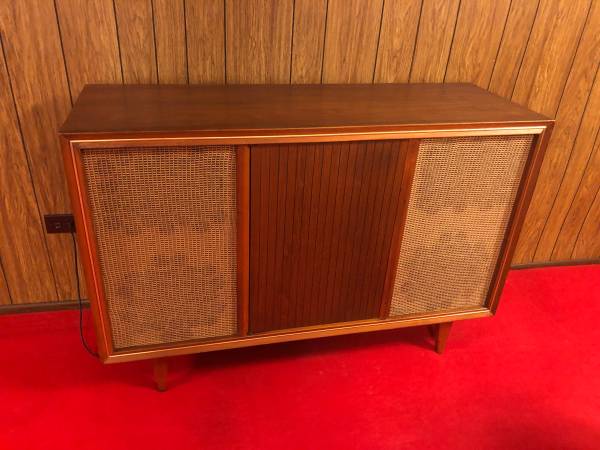 Selling my vintage mcm excellent condition record player. Made of wood. Front has doors and side speakers. Not sure it works but everything looks original. No damage. Comes from a smoke free, pet...