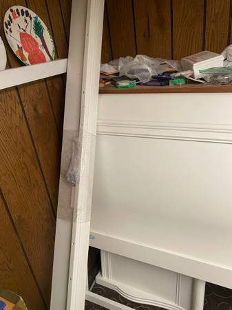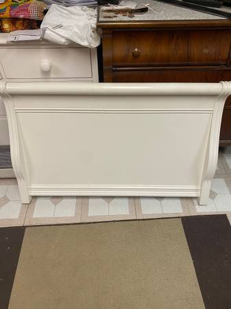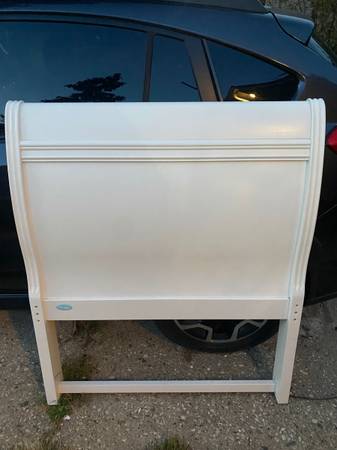 White, twin, kid bed frame. The bed is disassembled. Thank you.