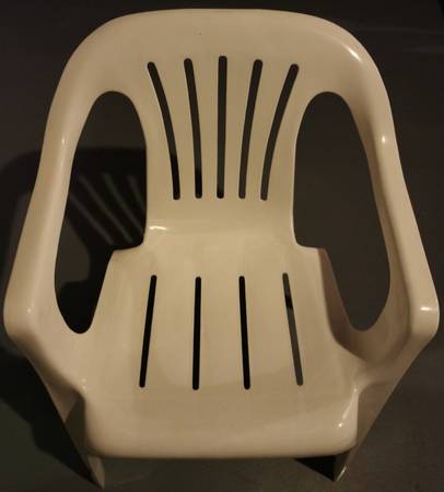 VINTAGE MIDCENTURY SYROCO WHITE STACKING CHAIR - made in USA - molded midcentury modern sturdy polypropylene armchair - upscale resin casual furniture - classic design - high quality American made ideal for outdoors : patio + pool + yard + garden + deck + balcony - 30" height x 22" width x 22" depth - several available - excellent condition - $38
