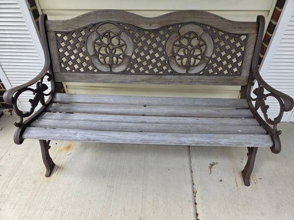 Outdoor bench Black Metal Wood Lattice 52” across Good used condition Glenview pickup