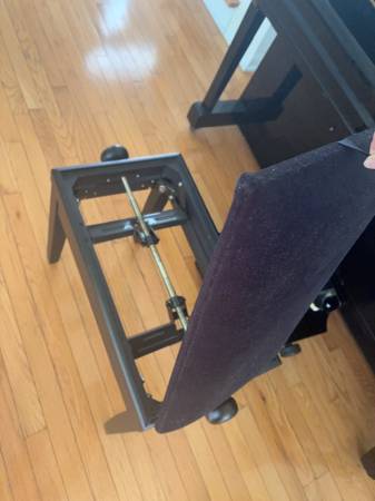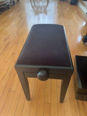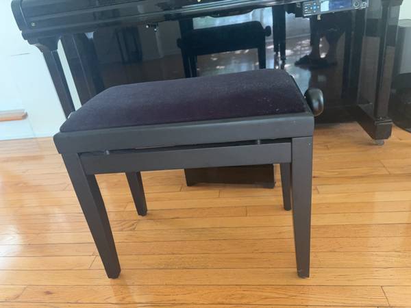This Flight piano bench redefines comfort! It features adjustable height so everyone from kids to adults can play with proper posture, and a padded velvet seat for support. It has a satin finish.