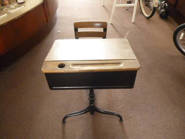 Selling a beautiful vintage school desk with the classic one-piece wood seat and writing surface. This is an authentic American Seating Company piece—solid, sturdy, and full of character. Perfect...