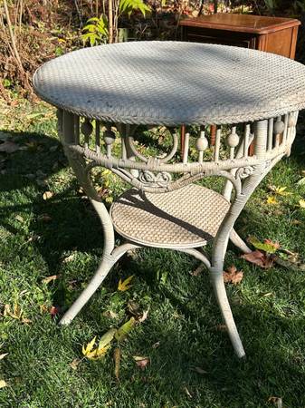 Victorian White Wicker Table $125 OBO Dimensions: 29” x 30”