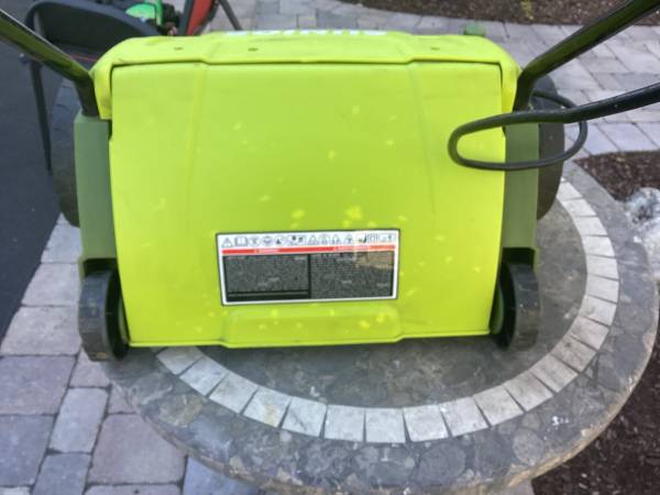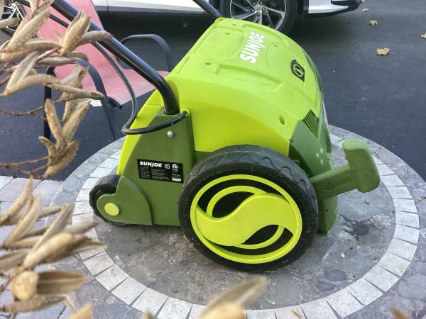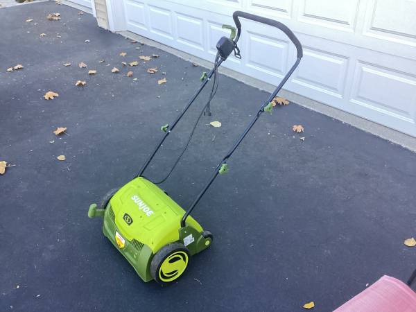 The machine works great. It comes with a thatcher head and an aerator head so you can get both jobs done with one machine. It also has a collection bag.
